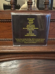 "S.P.G." is one of the few unreleased Crisis songs, and "All Alone In Her Nirvana" will be released in 1983 on the first mini-album of Death In June.
