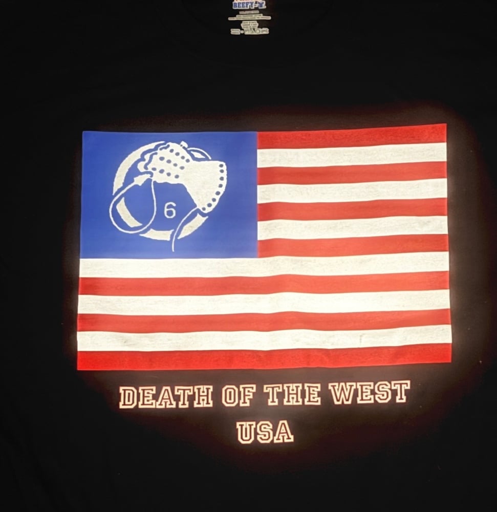 Warehouse find! We uncovered a long forgotten stash of t-shirts leftover from the 2013 and 2014 Death In June "Death Of The West" US tours. These are the last of the original batch of shirts, stored in closed boxes for 10+ years, now transformed into rare, vintage collector's items. Still in perfect condition, but very limited sizes and quantities, and definitely first-come, first served. 100% Cotton Hanes Beefy T's